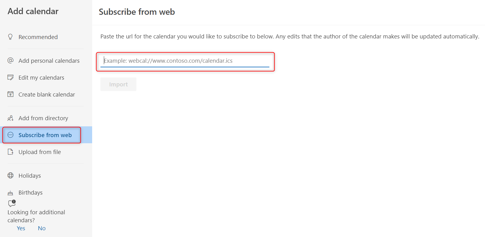 Then choose Subscribe from web and paste the copied URL into the text box.
