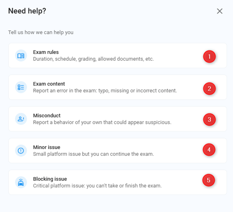 Si vous avez besoin d'assistance pendant l'examen de la part d'Evalmee, cliquez sur le bouton AIDE.