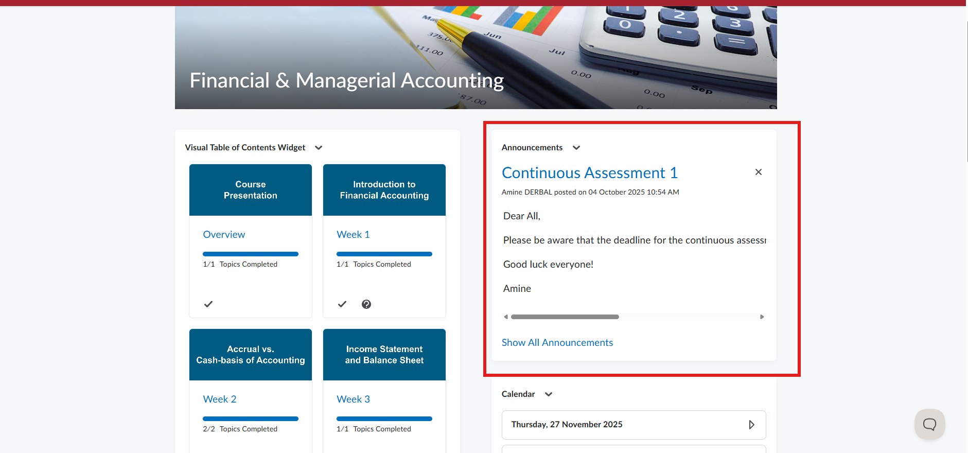 En maîtrisant la lecture des annonces, vous ne manquerez plus les informations importantes concernant vos cours : changements d’horaire, nouveaux contenus, rappels de dates, événements, etc.